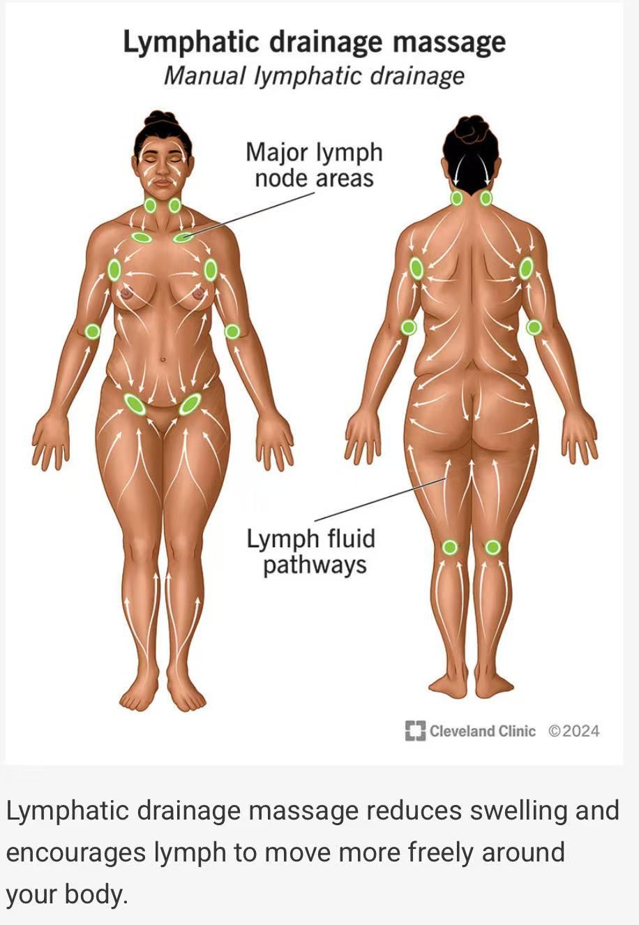A massage therapist uses lymphatic drainage techniques to move lymph from your tissues to your lymph nodes, which eases the swelling.
