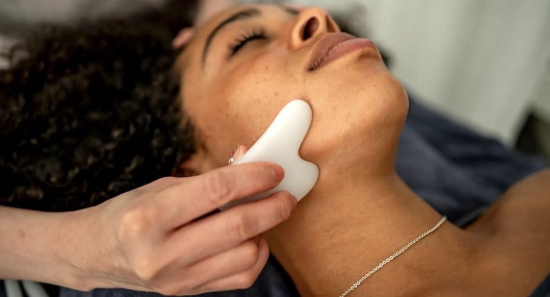 Gua sha is a traditional Chinese medicine technique that involves using a smooth-edged tool to gently scrape the skin. This process is believed to promote circulation, reduce inflammation, and relieve muscle tension.